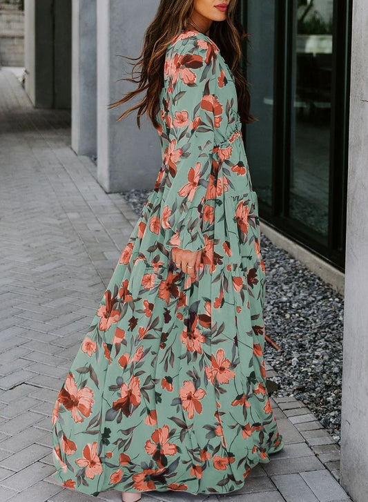Women's Summer Maxi Dress Floral Print with Long Sleeves