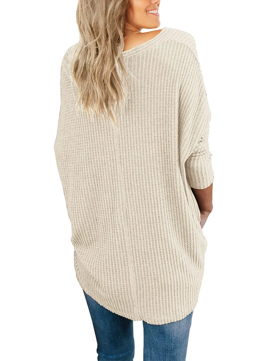 Womens Loose Blouse Long Sleeve V Neck Button down T Shirts Tie Front Knot Casual Tops Oatmea XL